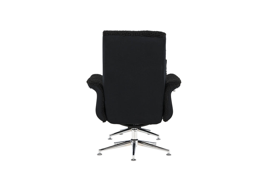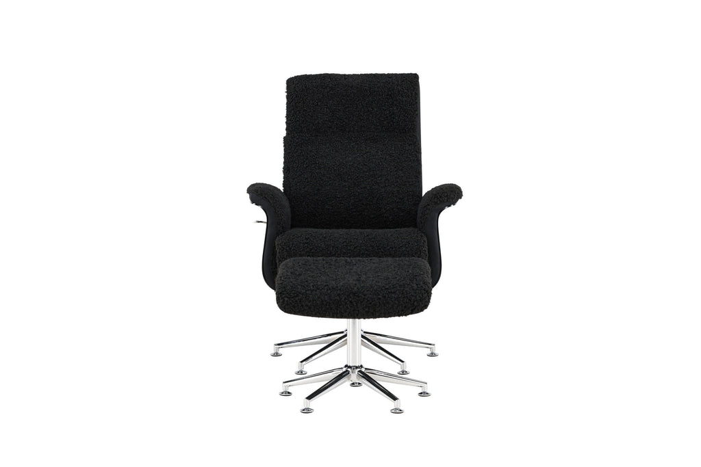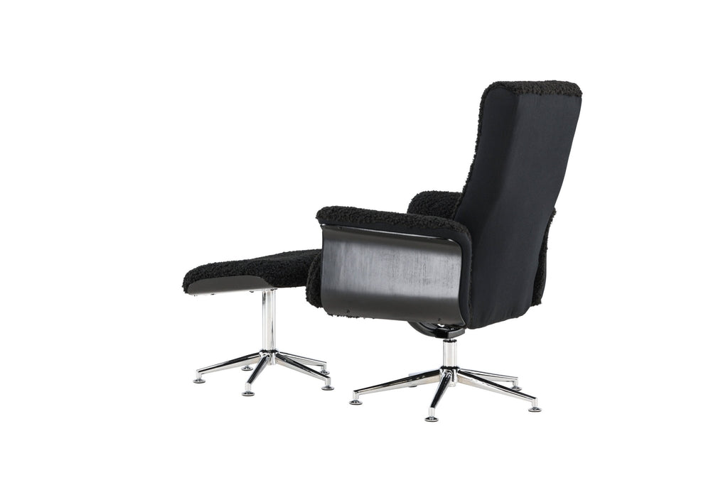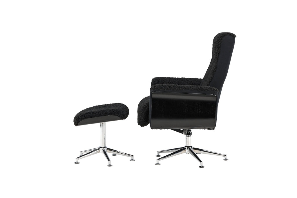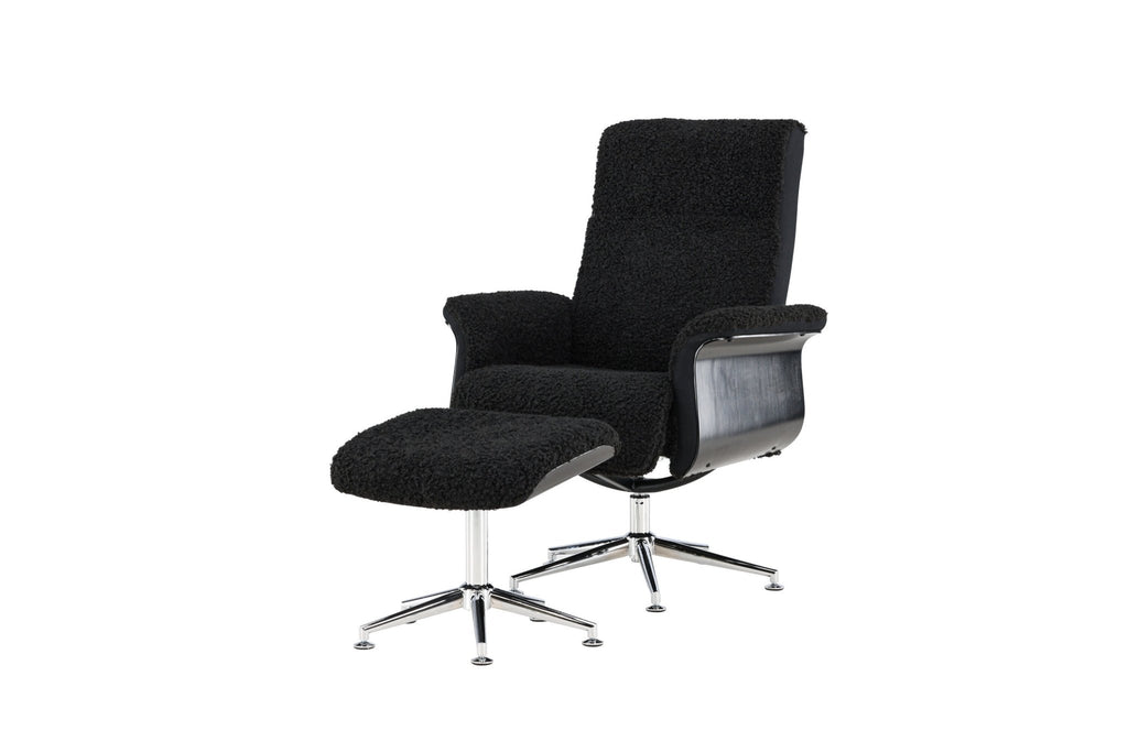 Treten Sie ein in eine Welt voller Komfort und Stil mit dem Hagön Sessel! Dieser weiche Sessel aus dunkelgrauem, fellähnlichem Stoff empfängt Sie mit sofortigem Komfort und Gemütlichkeit. Die flexible Rückenlehne kann verstellt werden, um den perfekten Komfort zu bieten, wenn Sie ein Buch lesen oder einfach nur entspannen möchten. Für ein erstklassiges Sitzerlebnis wird zum Hagön auch ein passender Fußhocker geliefert, der Ihre Füße zusätzlich stützt und entspannt. Mit seinen angenehm abgerundeten Armlehnen und dem eleganten schwarzen Gestell, das durch verchromte Beine ergänzt wird, bietet dieser Sessel eine moderne Ästhetik, die sich harmonisch in jeden Raum einfügt. Mit seinem nordischen Design und seinem unschlagbaren Komfort ist der Hagön ein Muss für jedes stilbewusste Zuhause.
