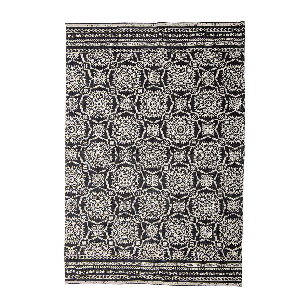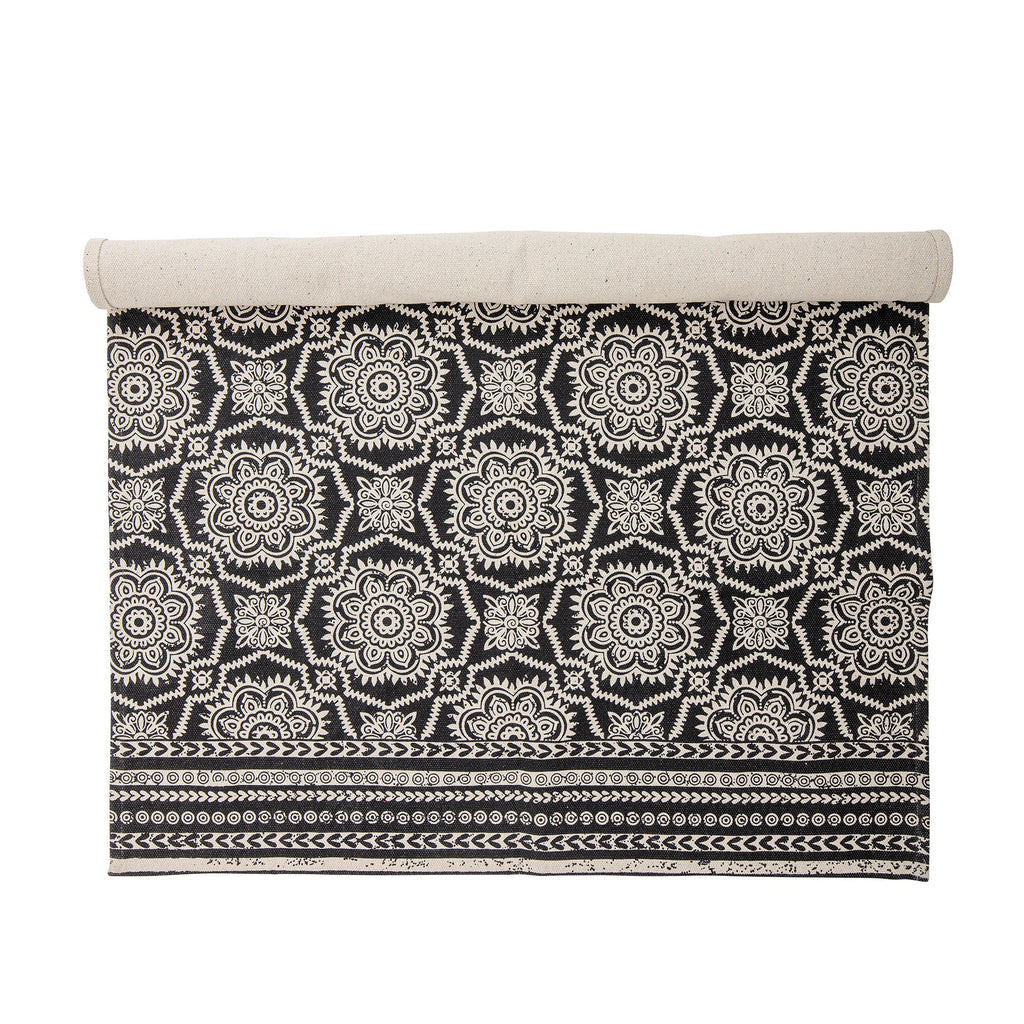 The Aco Rug by Bloomingville is a beautiful rectangular rug with a geometric design in black. The rug is made of cotton and its elegant esthetic brings warmth to the home floor.
