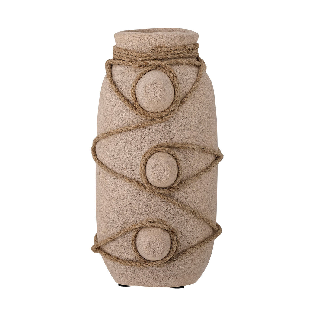 The Cari Vase by Bloomingville is made in ceramic with a beautiful natural color. It has a rustic, rough surface, and a lovely detail of hand braided jute, crossing the vase. It will surely add a personal touch and a cozy feeling, in any room it is placed in.