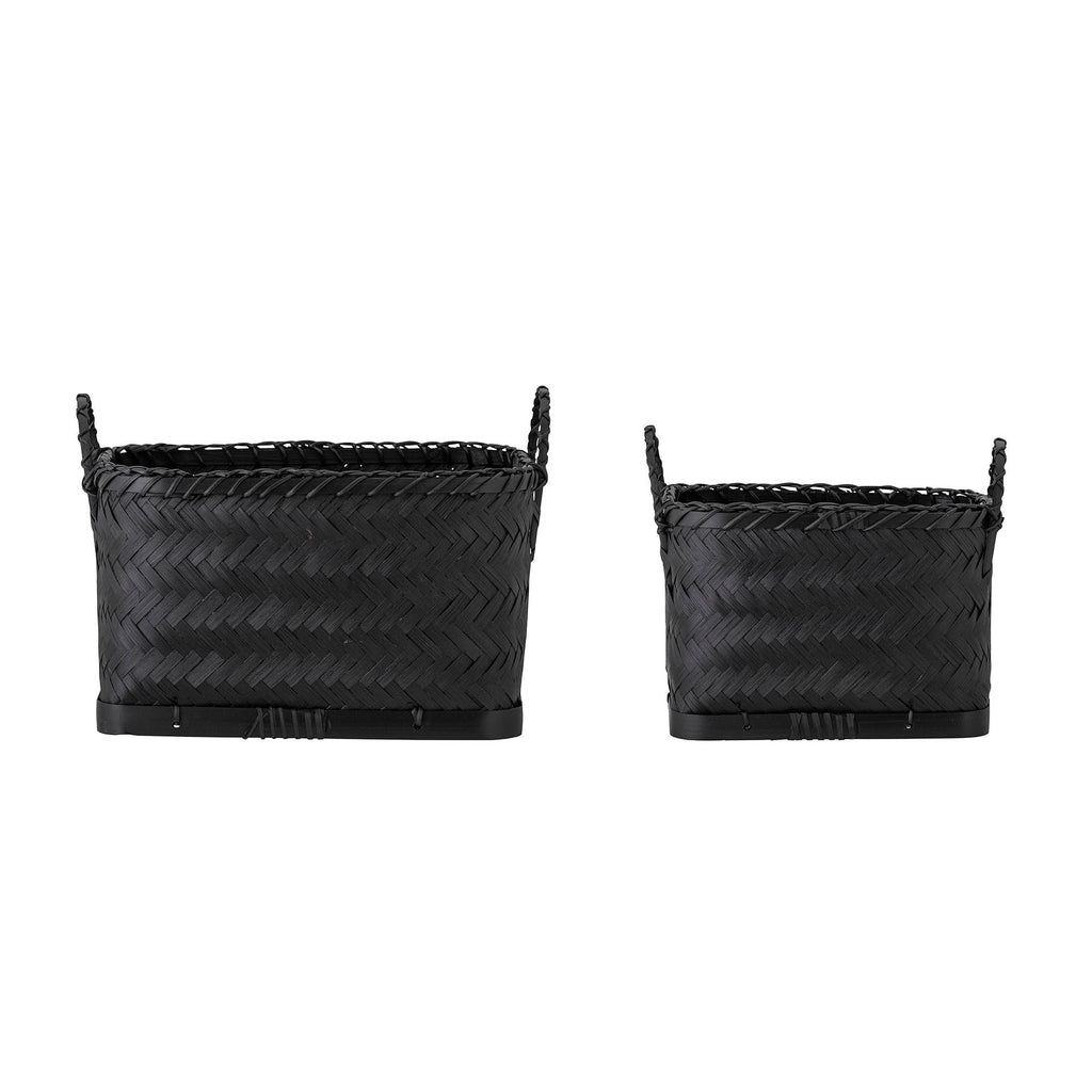 The Carmil Basket by Bloomingville is a practical set of 2 different sized baskets in black seagrass. The baskets have two very comfortable handles to transport them, and there is a nice storage space for your accessories or bathroom accessories.