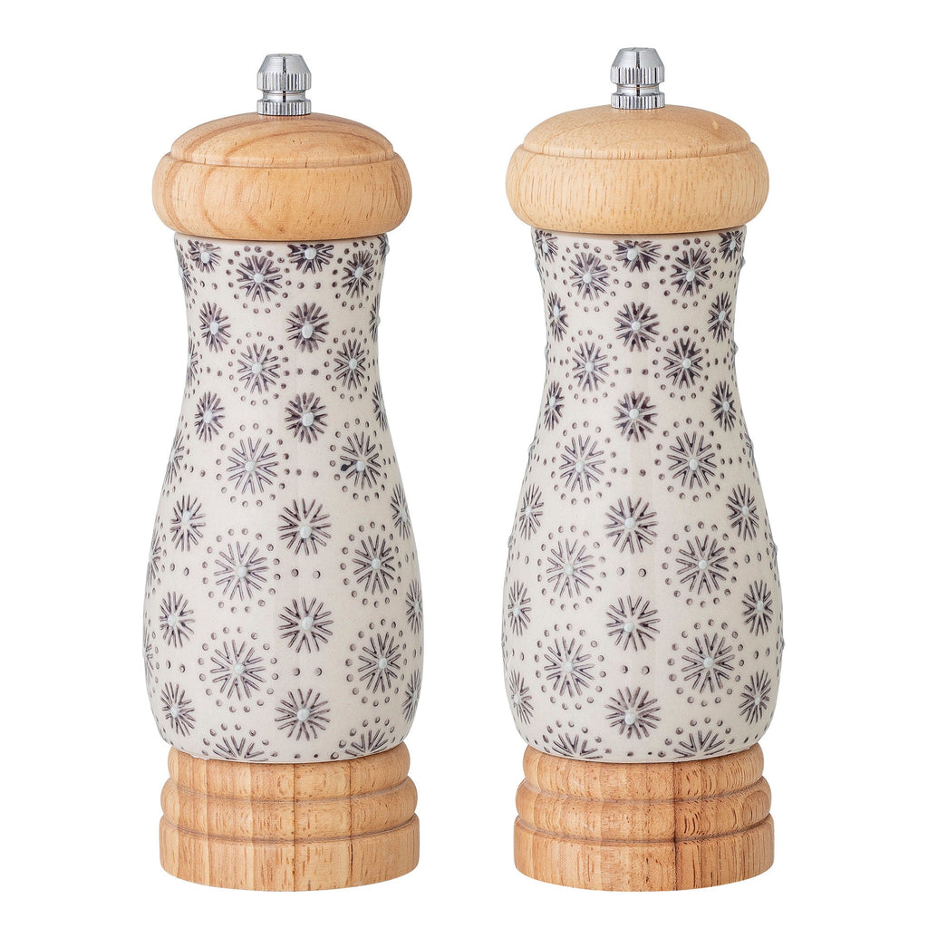 Die Salz- und Pfeffermühle Elsa von Bloomingville ist ein schönes Set mit mediterranem Flair. Das Salz- und Pfefferset besteht aus Steingut mit grauen Motiven, die einen Kontrast zum hellen Farbton des Gummibaums bilden. Das Salz- und Pfefferset ist eine perfekte Ergänzung für Ihre Küche, wenn Sie etwas suchen, das nicht nur funktional ist, sondern auch gut aussieht.
