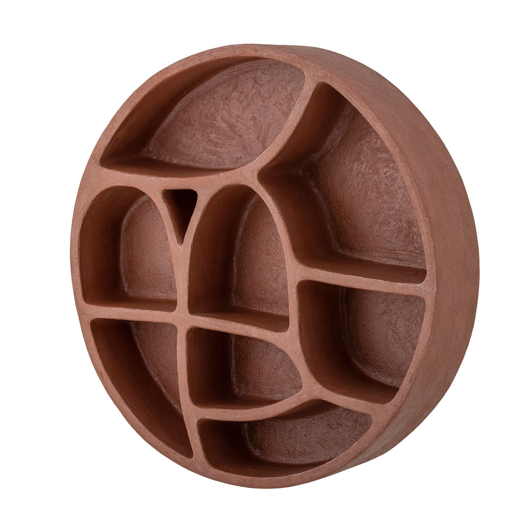 The Palmer Shelf by Bloomingville MINI is an organic shaped shelf, with small rooms for all the treasures of the MINI room. It is made in polyresin in a soft red color and with mounting on the back, for the wall.