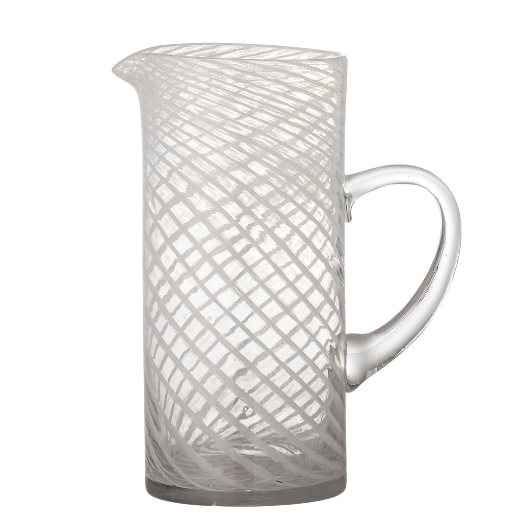 The Sakhi Jug is unique and handmade. The jug is made of thick glass with a mouthblown pattern, which brings the essence of the Nordic style, to the dining table. Small air bubbles and pattern variations will occur on the jug, as part of the charm.