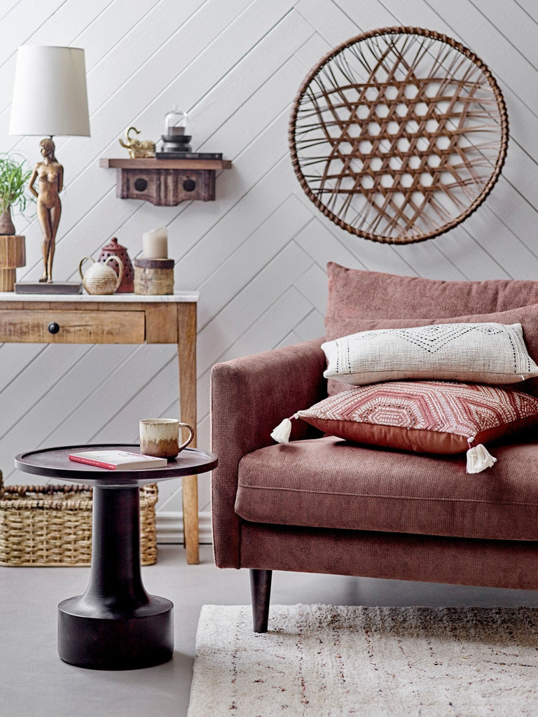 The Feluka Cushion by Creative Collection is a nice and soft cushion made of cotton and linen. It has a red-brown hue with double tassels and a beautiful printed pattern with embroidered details. The warm color will soften up your favorite sofa or armchair.