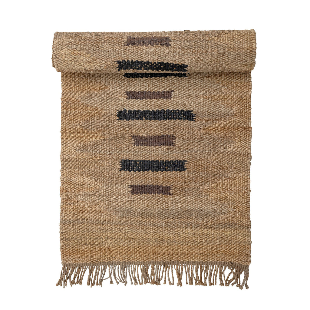Der Vilde Rug von Creative Collection ist aus Jute mit Lederdetails gefertigt und verleiht jedem Raum ein natürliches Gefühl. Das schlichte, aber kreative Design mit den schwarzen und braunen Lederdetails passt wunderbar in jeden Raum.