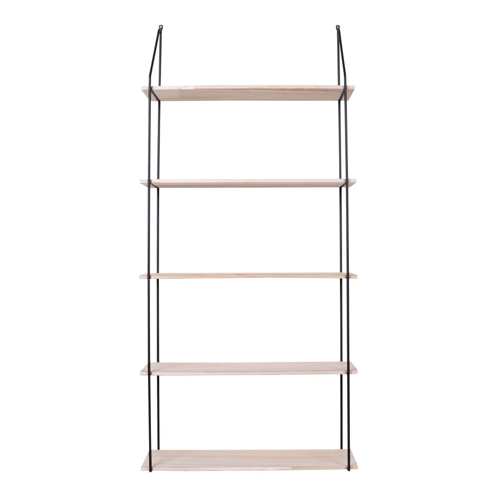 Shelf with black frame and 5 natural wood shelves - L: 65cm W: 17cm H:145cm (Weigth: 4,2 kg) - Material: Steel, Paulownia