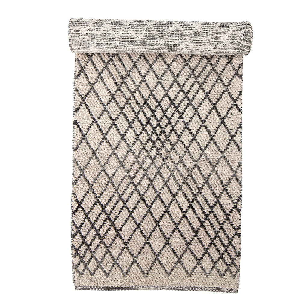 Gewebter Teppich aus einer Mischung aus weicher, dicker Wolle und Baumwolle. Moderner Teppich mit dichtem, dickem Flor von 2,5 cm und dekorativem Muster. Unsere Wollteppiche werden von erfahrenen indischen Teppichwebern mit einer langen Tradition an Webtechniken und Handwerkskunst gewebt.